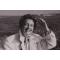 Photo de l'actrice Gisèle Pascal sur le canot à moteur qui l'amène à Saint-Honorat, vedette du Festival de Cannes tirage argentique par Interpress, 1953 bon état