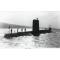 Photographie en noir et blanc du sous-marin HMS Ocelot. L'image montre le sous-marin en mer avec plusieurs personnes sur le pont. Le nom "H.M.S. OCELOT" est imprimé en bas de la photo. Au dos, il est écrit "OCELOT COMP. 1964" au crayon.