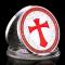 • Pièce en métal argenté avec croix templière rouge sur fond blanc