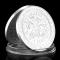 Cette pièce en métal présente une finition argentée soignée et des détails nets qui mettent en valeur son motif templier. Son étui protecteur rigide permet de la conserver facilement ou de l’exposer dans une collection.