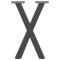 Pieds de table basse forme de X 2 pcs anthracite 38x(42-43) cmCes pieds de table basse allient forme et fonctionnalité. C'est un choix idéal pour personnaliser votre table basse. Matériau durable : ce pied de table est fabriqué en acier enduit de poudre, ce qui le rend robuste et durable.Structure robuste : la forme en X du pied de table en métal lui permet de supporter un plateau de table lourd.Conception pratique : ce pied de bureau comprend des niveleurs de pieds réglables, garantissant la stabilité même sur des sols irréguliers et minimisant les rayures sur le sol. De plus, le support comporte des trous pré-percés et des vis fournies, qui peuvent être utilisées pour fixer le pied au plateau de la table (non inclus), ce qui facilite l'assemblage.Esthétique moderne : le pied de table présente des lignes épurées et un design géométrique qui améliorent l'aspect général du meuble. Il s'adapte à tous les plateaux de table de taille appropriée. Bon à savoir :La livraison ne comprend que les pieds de table, le dessus de table n'est pas inclus.