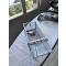 Structure solide et grillagée, avec poignée de transport intégrée.