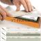 Face rouge grains épais #240 : recommandée pour recréer le tranchant d'une lame très émoussée. Très abrasive, elle va permettre de nettoyer le tranchant (qui peut présenter des micro-déchets d'acier dus aux découpes intensives, comme de petites dents qui abîment les aliments) en taillant complètement la matière lors de vos passages à sa surface. Elle est vraiment conseillée lorsque le couteau coupe très mal.