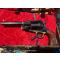 Canon miroir, toujours nettoyé directement après la session de tir, bronzage présent partout, aucun point de rouille, mais comme vous pouvez le voir sur les photos, le fait de l'avoir rangé dans son holster en cuir (qui contient des tanins) à légèrement changé la couleur du bas de la carcasse. Le bronzage n'est pas altéré en lui-même, seule sa couleur à changé à ces endroits.