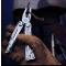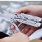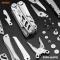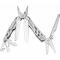 16 Fonctions : Pince à bec effilé, pince standard, coupe-fil remplaçable, coupe-fil dur, coupe-fil torsadé, scie, lame remplaçable, tournevis cruciforme, coupe-corde, dénudeur de fil, ouvre-boîte, décapsuleur, tournevis plat, brise-vitre, ciseaux, règle.