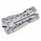 L'outil principal est doté d'une lame de 5,72 cm de type Lame Combo (partiellement lisse, partiellement dentelée), fabriquée en Acier Inoxydable. La lame et les outils extérieurs sont verrouillables pour une sécurité accrue lors de l'utilisation.