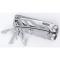 Longueur fermé 10.79cm - Longeur ouvert 16.51cm : Poignée en acier inoxydable. Nombreuses fonctions : Pince à bec l Pince l Coupe-fil l Lame de scie l Petite lame l Tournevis Phillips l Dénudeur de fil l Ouvre-boîtes l Ouvre-bouteilles l Tournevis à tête plate l Brise-vitres l Ciseaux l Règle l Pince à couper les fils durs remplaçables I Pince à couper les fils épais I Coupe-fil. Pochette en nylon noir.