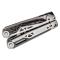 L'outil comprend également un coupe-fil, un dénudeur de fil, une lime fine/grosse, une scie, un bord biseauté, des embouts de tournevis cruciforme et plat, une règle et un trou pour cordon. L'étui fourni peut être porté horizontalement ou verticalement.