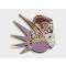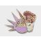Détails visuels : Le design est très évocateur de la Polynésie avec un profil de Tiki stylisé brun et un motif solaire/éclat violet, le tout rehaussé par une finition dorée.