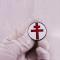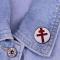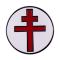 Beau badge en métal figurant une croix de lorraine rouge sur fond blanc.