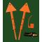 Pack chasse sécurité 100% MADE IN FRANCE (fabriqué à Oyonnax) avec : 1 paire de piquets de battue PIQ-BAT orange fluo (2 piquets), un drapeau de chambre vide STOP-TIR version HUNTER orange avec schéma sur les angles des 30° et le tour de cou STOP TIR.