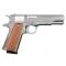 Ce modèle inspiré du légendaire M1911 adopte un style classique avec une finition nickelée polie et des plaquettes de crosse en bois lisse. Chambré en .45 ACP, il offre une capacité de 8 coups, une détente nette et un canon de 5 pouces, garantissant équilibre et précision.