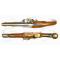 Rare et superbe pistolet au modèle An8 . Produit vers 1799 à St Etienne . Ce modèle qui est caractéristique dans la production révolutionnaire de St Etienne est difficile à dater. Toutefois on observe que ce modèle commence à porter des poinçons de contrôleurs et réviseurs de la manufacture à partir de 1800-1801 . Ici nous trouvons la marque très bien poinçonnée du Réviseur Joseph GUICHARD sur toutes les garnitures . Nous trouvons aussi un très bon poinçon du contrôleur Claude SOVICHE sur la platine . Ce sont les seules marques de réception. Avant 1800 , les manufactures ne sont pas réorganisées et les armes sont souvent produites par des ateliers privés puis réceptionnées par les services de contrôle militaires .