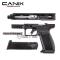 Equipé d'un canon chromé fluté, il est fileté en 13/5x1 LH pour l'adaptation d'un modérateur de son.