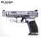 Il est livré dans une mallette rigide sur deux étages avec différents accessoires (Chargeurs, grips, kit de nettoyage, holster, platines point rouge, puits de chargeur, outil de démontage...)