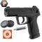 Pistolet de tir à CO2 acceptant les diabolos et les billes acier. - -Chargeur rotatif 2 x 8 coups par inversion du chargeur. -Cartouche CO2 12 g dans la poignée. -Armement réaliste de la culasse puis semi-auto. -Rail picatinny pour lampe ou laser. -Visée fixe, sureté manuelle. -
