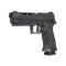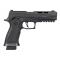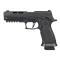 Parmi ses autres caractéristiques, on retrouve une culasse entièrement métallique et un canon compensé à un seul orifice, ce qui lui confère un aspect résolument axé sur la haute vélocité. Ce pistolet est également équipé d'un levier de démontage fonctionnel permettant de retirer sans outil la culasse, le canon et le guide de recul. Le rail Picatinny facilite le montage de viseurs laser et autres accessoires. La culasse métallique à recul intégral génère une forte inertie. Le système de chargement de CO2 à levier à came breveté permet un changement de cartouche sans outil. Caractéristiques : Référence AIR-P320SC-177-BLK Type d'action : Semi-automatique Compatible avec le viseur point rouge SIG AIR : Oui Rail d'accessoires : M1913 Système de fonctionnement : CO2 Organes de visée : Contraste métallique Calibre : .177 cal Poids de plomb optimal : 5,0 à 8,0 grains (0,32 à 0,51 g) Chargeurs inclus : 1 chargeur de 20 coups Longueur totale : 216 mm (8,5 pouces) Poids de la détente : 2 kg (4,5 lb) Vitesse initiale : 103,6 m/s (340 pi/s) avec 0,50 g (7,71 gr) de CO2 Capacité de la cartouche : 12 g Poids : 1,05 kg (37 oz)