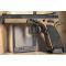 L'arme est livrée dans une superbe mallette contenant 3 chargeurs 20 coups, une chargette, un nécessaire d'entretien, un calepin, clés BTR et toutes sortes de pièces de rechange (ressorts de différents tarages, etc...). Le look de cette arme avec revêtement Cerakote Bronze, canon poli et plaquettes alu quadrillées est superbe. Le poids est conséquent (1.3 kg) mais indispensable a un enchaînement rapide des coups sans perte de la visée. La prise en main est excellente, le repose pouce et les leviers de sécurité ambidextres bien placés, bouton de chargeur assez proéminent pour un changement de chargeur ultra-rapide dans la course. Les organes de visé sont d'une netteté parfaite pour un tir instinctif, la hausse réglable est dans un logement fraisé dans la carcasse afin de réduire la hauteur pour une visée flat.