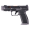 Le Pistolet Tti Combat Smoke 9X19, développé en collaboration avec Taran Tactical Innovation, est conçu pour les tireurs sportifs exigeants. Avec une carcasse en polymère, il offre une capacité de 18 coups grâce à ses deux chargeurs inclus. Son design unique se distingue par une culasse avec arrêtoir et un compensateur breveté, tandis que ses organes de visée en fibre optique HIVIZ assurent une précision optimale. Compatible avec plusieurs platines pour point rouge, ce modèle intègre un rail picatinny MIL-STD-1913 et un témoin d'armement du percuteur.