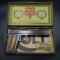 Ce pistolet Colt 1900 est présenté dans une boîte en bois d’époque, correspondant au modèle du distributeur Simmons. La partie inférieure de la boîte, anciennement modifiée puis partiellement arrachée, a été restaurée avec une étiquette papier afin d’en améliorer la présentation.