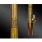 Garnitures en laiton ciselé et gravé en suite. Queue de détente ajourée. Pommeau à longue queue gravé en suite, avec clou de calotte en relief gravé en fleur.