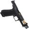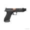 Le DR920P est un pistolet de taille normale, 17+1, avec un compensateur intégré dans le canon. Le compensateur intégré n'utilise pas de canon fileté, ce qui rend le DR920P conforme à de nombreuses juridictions qui interdisent les canons filetés. Le compensateur et la glissière du DR920P sont usinés pour donner une apparence monobloc et la conception permet de retirer et de fixer rapidement le compensateur pour le nettoyage. Le compensateur intégré s'aligne automatiquement sans nécessiter de vis de réglage ou d'autres dispositifs de friction. Le viseur avant du DR920P est monté directement sur le compensateur, pour un suivi plus rapide d'un coup à l'autre. Le DR920P s'adapte aux holsters G34, il est livré avec des backstraps interchangeables qui permettent d'ajuster le point de visée et avoir un meilleur contrôle du recul. La gâchette à face plate à une force d'attraction de 2 à 2.2 kg avec un réarmement net et tactile. Le canon cannelé en spirale de qualité match est doté d'un système de fixation de compensateur en attente de brevet, qui utilise un système de broche facile à détacher pour monter le compensateur. Le DR920P est proposé avec la glissière Elite, qui comprend des dentelures directionnelles avant et arrière, une découpe de fenêtre optimisant le poids et le système optique multi-empreintes de Shadow Systems. La découpe de l'optique permet le montage direct sur la glissière de la plupart des grandes marques d'optiques à point rouge, sans avoir à utiliser de plaques ou d'adaptateurs. Un viseur avant vert tritium est monté directement sur le compensateur intégré et est associé à un viseur arrière dentelé noir. Le DR920P s'adapte aux étuis Gen 4 G34. Il est livré avec 2 chargeurs 17 coups Magpul, un cadenas et une mallette de transport souple.