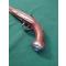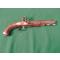Pistolet Française á silex circa 1770 ( Louis XVI) .Canon round avec decorations martiaux á or partiellement effaçées. . stock bois , sculptée des motifs florals, Piéce de pousse en argent, petite restoration au fut. .Funtionne bien .Le ressort fort.Le butt plain..Metal acier aux garnitures ( ? ) Decorations vegetalistes .Marquée avec poinçons de la Manufacture de St Étienne ( cutê guache au canon ) .Baguette acaju et metal.
