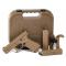 Livré avec 2 dosserets de poignée comme sur les pistolets de la génération 4, une mallette assortie à la couleur de l'arme avec 1 chargette, 1 chargeur de 17 coups + 2 chargeurs de 17 2 coups et 1 kit de nettoyage.