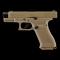 Descriptif Cette réplique du Glock 19X se distingue par sa culasse en métal tan avec gravures originales et son système Blowback. Il combine la poignée pleine taille du Glock 17 avec la glissière compacte du Glock 19. La sécurité est intégrée à la détente et renforcée par un second dispositif sous le rail.