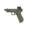 GLOCK présente ici l'édition Hunter du G45 COA spécifique par sa couleur vert olive et ses équipements: