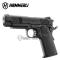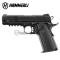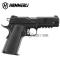 Pistolet emblématique 1911 en calibre .22 LR, arborant un design traditionnel avec toutes les caractéristiques typiques. La culasse, usinée CNC en aluminium (T7075), est accompagnée d'une sécurité de pouce et d'une sécurité beavertail permettant le port traditionnel en mode "armé et sécurisé". Pour une sécurité opérationnelle maximale, il dispose d'un arrêtoir de culasse.