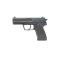 - un levier de sûreté/désarmement inversé (vers le bas = « safe », vers le haut = « fire » -- l'inverse du USP standard),