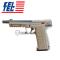 Il est équipé de rails Picatinny pour accessoires et des organes de visée en fibre optique pour une acquisition rapide de la cible.