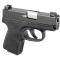 Son canon inox de 64 mm (2.5") garantit une bonne précision à courte portée. La culasse noire avec stries de préhension et finition mate antireflet assure une manipulation sûre. Le bâti en polymère noir renforcé en fibres de carbone combine légèreté (moins de 400 g chargé), résistance et confort. Les organes de visée fixes de type bar-dot, discrets mais efficaces, sont bien adaptés à ce format. Le calibre .380 ACP (9 mm court) assure une puissance suffisante pour la défense tout en conservant un recul maîtrisé.