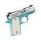 Les plaquettes en Micarta ivoire complètent la carcasse unique Bel Air Blue et la culasse polie miroir du Micro 9 Bel Air, un modèle en 9 mm idéal pour le port dissimulé.