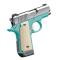 Les plaquettes en Micarta ivoire complètent le cadre unique Bel Air Blue et la culasse polie miroir du Micro Bel Air, un modèle en .380 ACP idéal pour le port dissimulé.