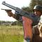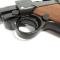 Reproduction de pistolet, en métal et poignées en bois, avec mécanisme de simulation de charge et de tir et chargeur amovible.