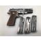 livré avec 3 chargeurs de 15 coups (2 origines et 1 compatible) + holster cuir + plaquettes bakélite d'origine + ressort de percuteur