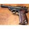 Beau pistolet semi-automatique P 38 calibre 9 x 19 fabrication fin de guerre par le combinat Mauser ( code byf) en 1944. Arme avec ses belles plaquettes en bakélite brun/ rouge trés prisées des amateurs et objectivement les plus belles. Trés bon canon pour le tir, exemplaire monomatricule.