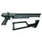 Pistolet PCP évolutif en arme longue grâce à sa crosse. Son boitier inclut également un rail fraisé pour y adapter une optique. Rechargement à air comprimé PCP Calibre : 5,5 Vitesse : 213m/s Energie :18Joules Canon basculant : rayé en acier Capacité: barillet 8 coups Crosse : synthétique noire Détente : réglable Sûreté : bouton poussoir Rail : 11mm Longueur totale : 46cm Poids : 1.23kg
