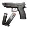 Doté d’un canon de 95,5 mm, d’un fonctionnement en simple et double action (SA/DA) et d’une hausse réglable à 2 points blancs, ce modèle assure une acquisition rapide de cible et une excellente précision. Sa carcasse en aluminium et polymère garantit à la fois robustesse et légèreté, pour un poids de seulement 800 g.
