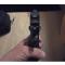 Poignée en synthétique et alliage disposant de strie losange sur les cotés et à l'arrière.