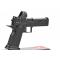 Le H-Tac double empilement est conçu pour ceux qui valorisent une qualité et un savoir-faire élevés, en plus de la protection personnelle, de la défense à domicile et même de l'usage en compétition. Il présente des stries de glissière avec des trous traversants, des ports de canon inclinés qui dirigent les gaz loin de votre ligne de mire, et est complété par des organes de visée co-témoins prêts à l'emploi pour maintenir la visée sur la cible.