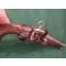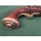 Pistolet Portuguaise á silex circa 1790/ 1800* avec crochet de ceinture .Canon á pans á un tiers et round avec un petit peau d´orange. stock bois avec quelques fissures , collages et enfoncements , mais solide. .Funtionne bien .Le ressort fort. Baguette acier substituée .Le butt finis normalment en forme d´un ouef.Decorations vegetalistes aux garnitures, bois , etc.Platine caractheristique portuguaise distinte du miquelet.Piéce de pousse.Crochet de ceinture.