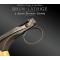 Les plaquettes de crosse sont moulées et collées entre elles ; le décor sur un côté représente un homme qui se défend d’une attaque de deux agresseurs, et sur l’autre d’un cycliste qui se défend de l’attaque d’un chien, le chiffre « BL » entrelacé est présent sur chacun des côtés.