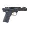 Glissière finition gris anodisé ou noire et canon fileté 1/2x28. Rail Picatinny et hausse réglable.