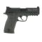 La glissière en aluminium est striée pour une meilleure préhension et accueille une visée 3 points blanche, avec hausse réglable et guidon fixe. Léger, fiable et bien conçu, le M&P22 Compact non fileté offre aux tireurs de tous niveaux un accès abordable à l’univers M&P.
