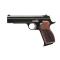Pour démonter l'arme, la saisir par la poignée de la main droite, et placez votre index sur l'extrémité de l'arrêtoir de culasse qui dépasse du côté droit de l'arme. De la main gauche, faites reculer la glissière de 1 à 2mm et en même temps, poussez sur l'extrémité de l'arrêtoir de culasse de votre index droit. La glissière se déverrouille et l'arrêtoir de culasse s'enfonce et fait saillie du côté gauche de l'arme. Retirez l'arrêtoir de culasse et sortez la glissière par l'avant. Sortez le ressort récupérateur puis le canon de la glissière.