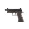 Doté d’une détente droite XSeries Skeleton, il assure un départ plus net, environ 30 % plus léger que les autres modèles P320. Le canon en acier carbone de 4,6 pouces (11,7 cm) est fileté au pas 1/2x28, prêt à accueillir un modérateur de son.