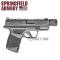 Le pistolet Springfield Armory Hellcat OSP TB CC en calibre 9x19 mm, avec un canon de 3,8 pouces, est conçu pour offrir à la fois performance et discrétion.